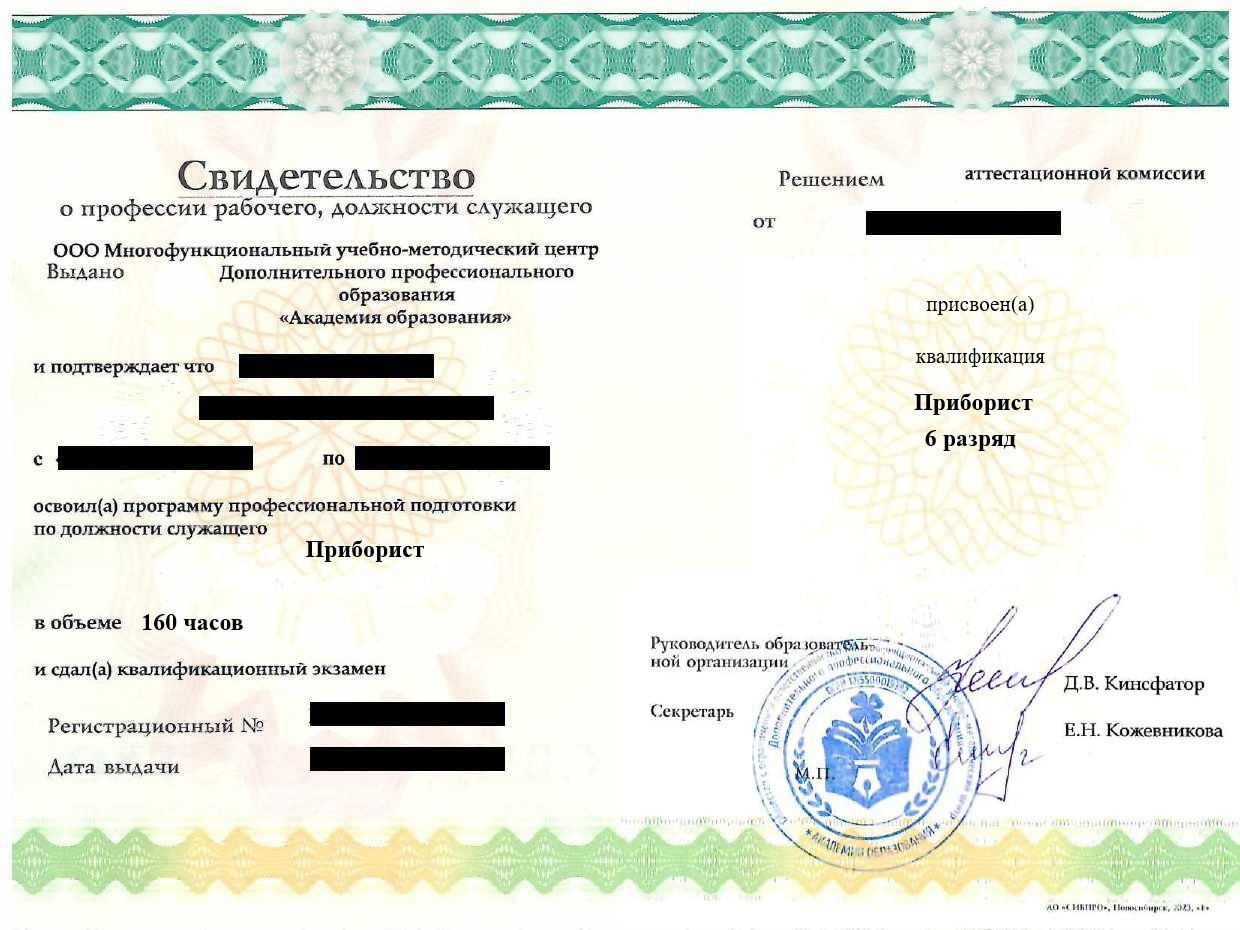 • Свидетельство о профессии рабочего, должности служащего установленного государством образца